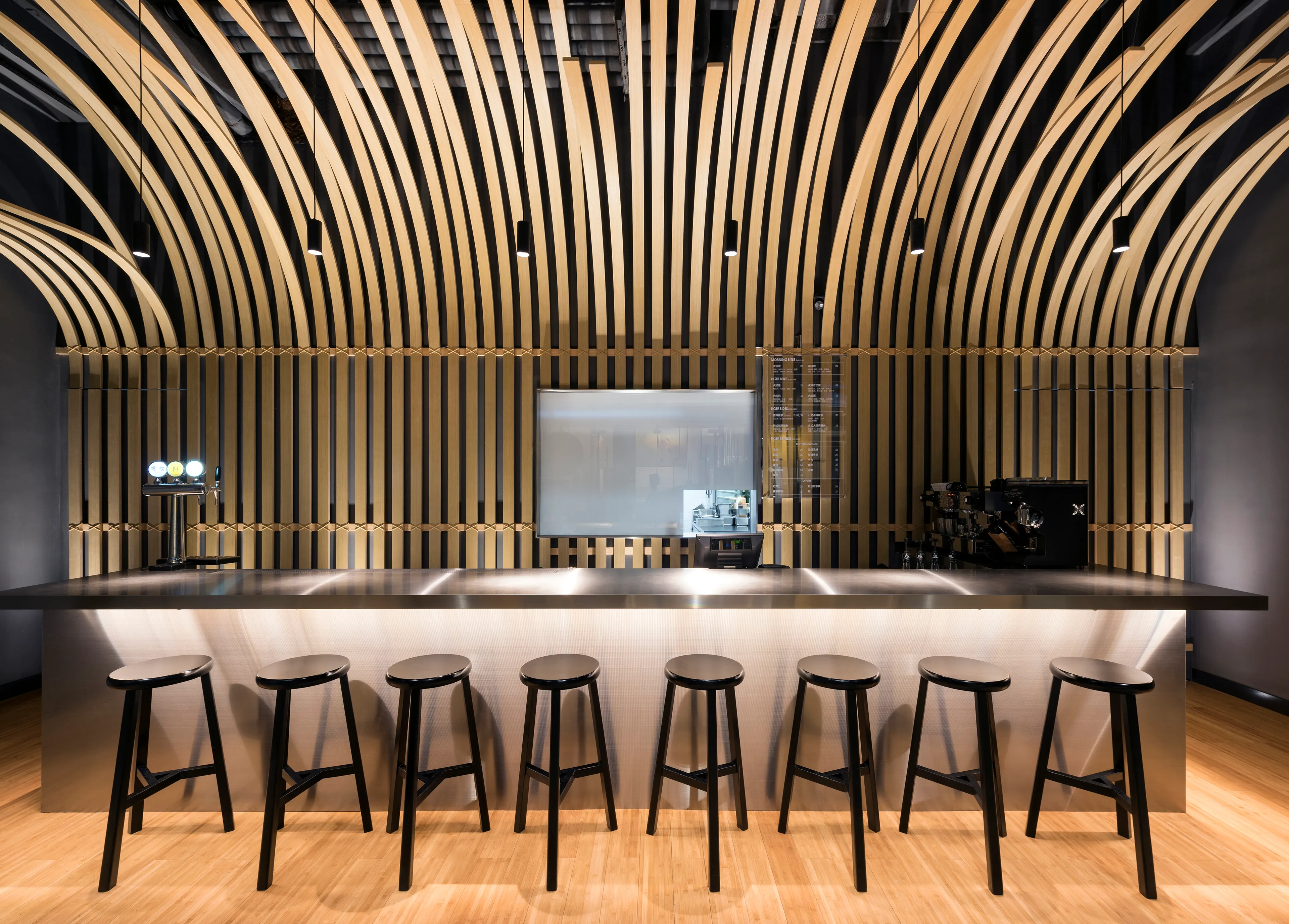 The storefront concept is a casual Taiwanese eatery, named after one of Taiwan’s best-loved eats, gua bao: braised belly pork served in a steamed bun. Literally translated as Tiger Bites, it is so named for its resemblance to the mouth of a big cat, devouring a juicy slice of meat. The moniker and concept are illustrative of an overarching design concept that reimagines Taiwan’s culinary traditions in an unmistakably contemporary context.