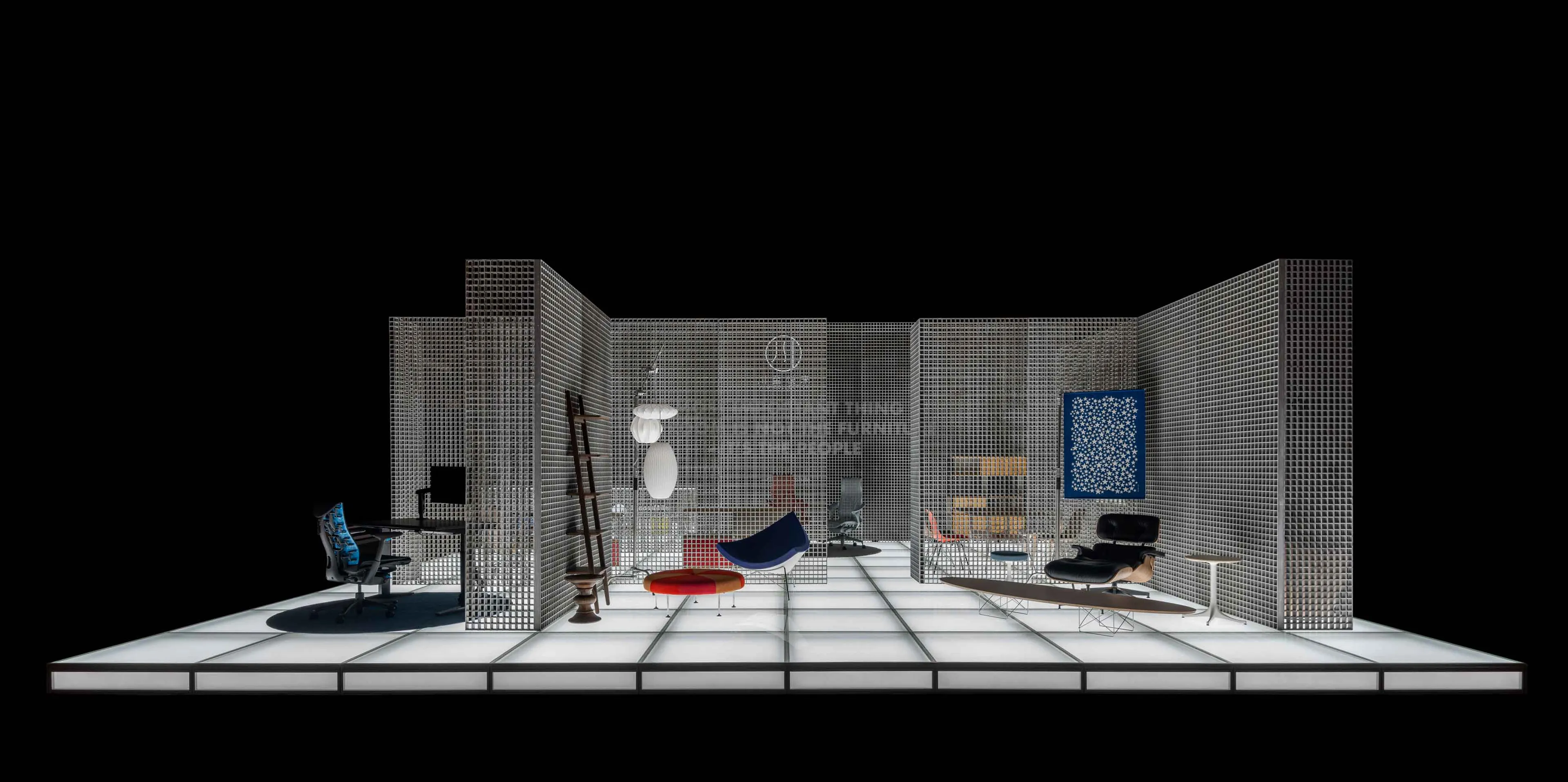A highlight of Design Shanghai 2021, Alberto Caiola’s extraordinary booth for Herman Miller retailer’s Van Collection, quite literally cast the home in a new and unexpected light. Showcasing home and office furniture by the iconic American brand the installation was debuted at this year’s Design Shanghai, China’s leading showcase for international design brands, architects, and interior designers.